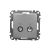 Sedna Gniazdo R/TV przelotowe (10dB), srebrne aluminium, to osprzęt serii Sedna Design marki Schneider Electric. Gniazdo R/TV przelotowe (10dB) ma malowane wykończenie powierzchni w kolorze srebrnego aluminium i posiada następujące wymiary: szerokość 73 mm, wysokość 73 mm, głębokość 34 mm, głębokość wystawania 14.6 mm. Gniazdo charakteryzuje się stopniem ochrony IP20. Do produkcji gniazda wykorzystano tworzywo termoplastyczne o zwiększonej odporności na promieniowanie UV. Produkt jest montowany podtynkowo.