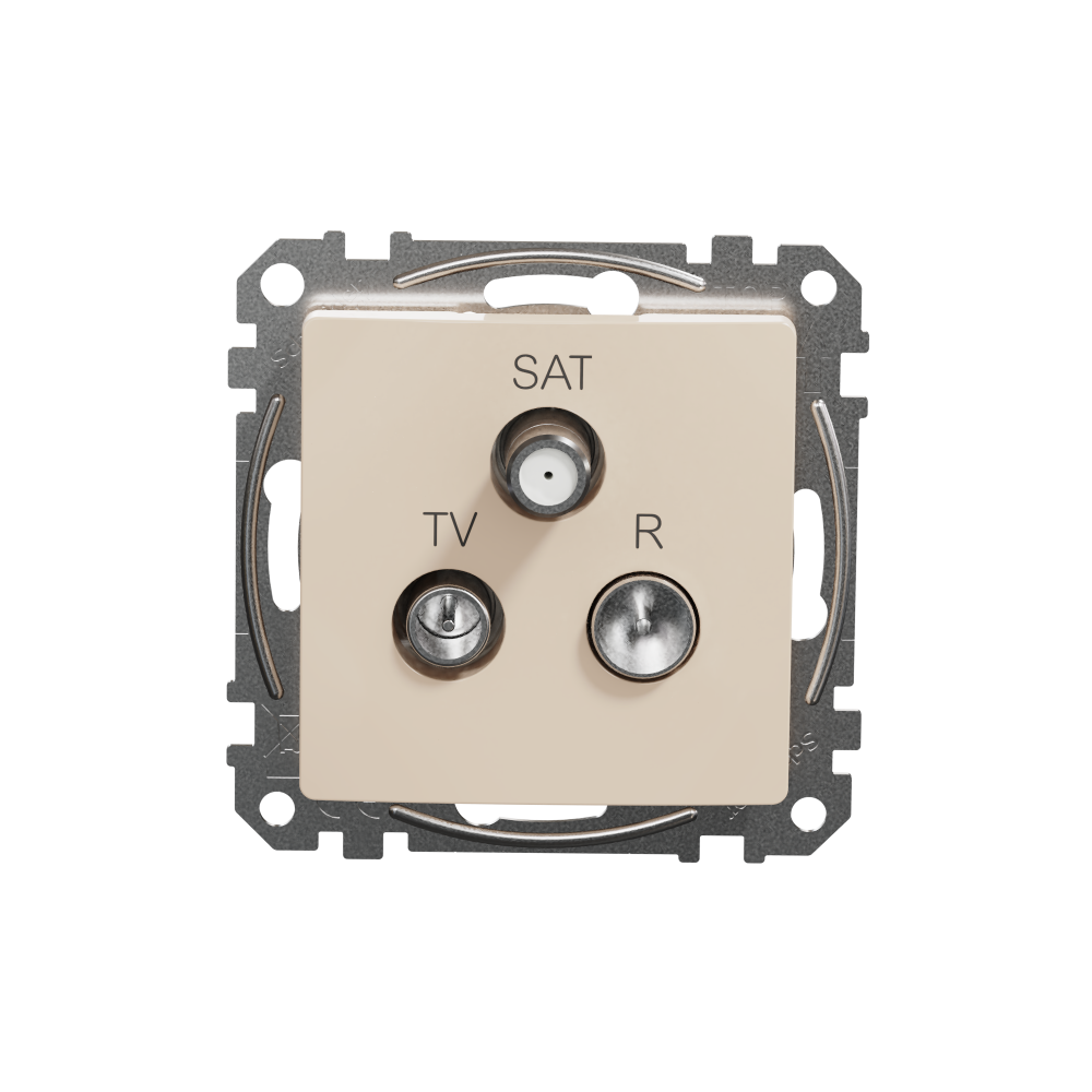 Sedna Gniazdo R/TV/SAT przelotowe (7dB), beżowy, to osprzęt serii Sedna Design marki Schneider Electric. Gniazdo R/TV/SAT przelotowe (7dB) ma lśniące wykończenie powierzchni w kolorze beżowym i posiada następujące wymiary: szerokość 73 mm, wysokość 73 mm, głębokość 41 mm, głębokość wystawania 17.4 mm. Gniazdo charakteryzuje się stopniem ochrony IP20. Do produkcji gniazda wykorzystano tworzywo termoplastyczne o zwiększonej odporności na promieniowanie UV. Produkt jest montowany podtynkowo.