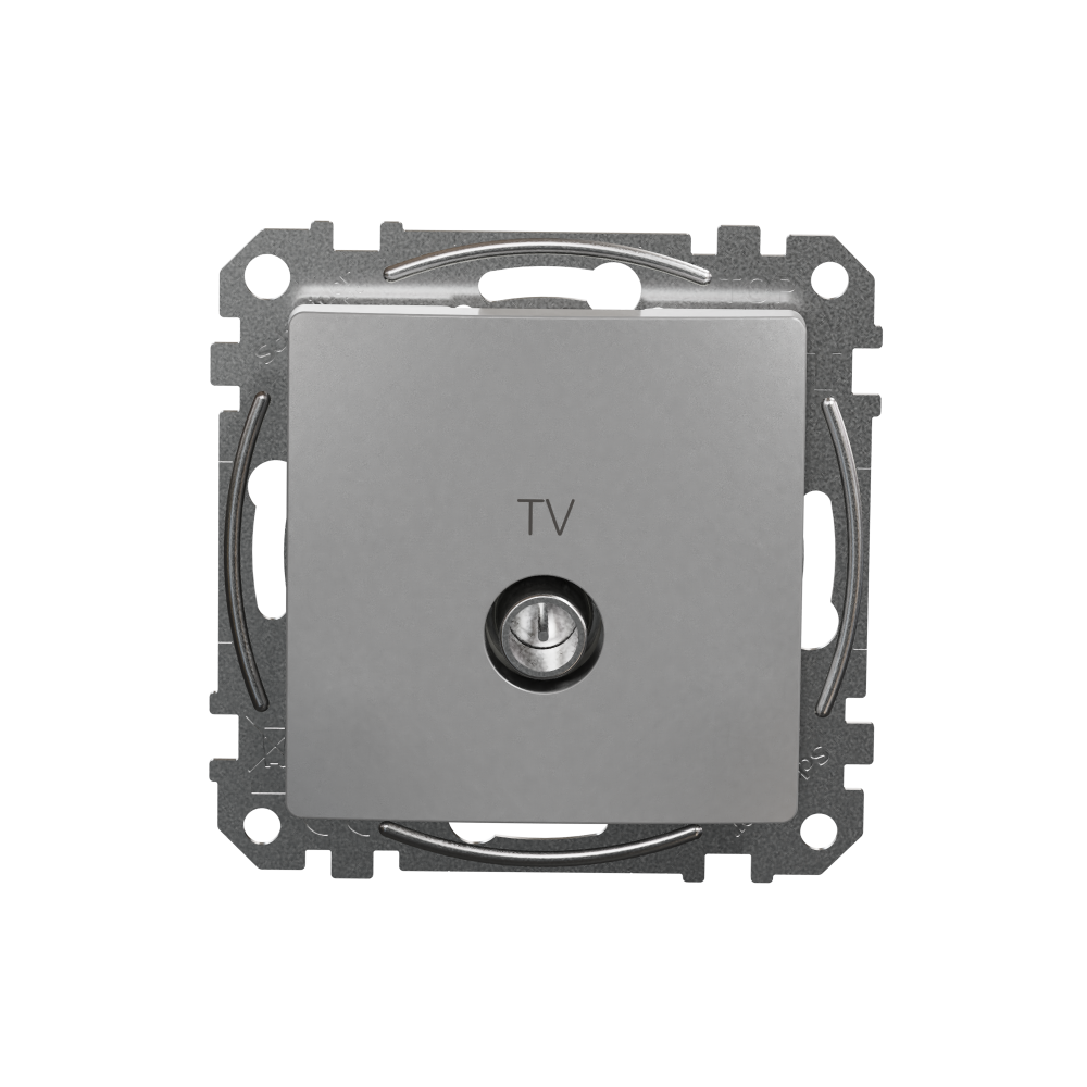 Sedna Gniazdo TV przelotowe (10dB), srebrne aluminium, to osprzęt serii Sedna Design marki Schneider Electric. Gniazdo TV przelotowe (10dB) ma malowane wykończenie powierzchni w kolorze srebrnego aluminium i posiada następujące wymiary: szerokość 73 mm, wysokość 73 mm, głębokość 35 mm, głębokość wystawania 14.6 mm. Gniazdo charakteryzuje się stopniem ochrony IP20. Do produkcji gniazda wykorzystano tworzywo termoplastyczne o zwiększonej odporności na promieniowanie UV. Produkt jest montowany podtynkowo.