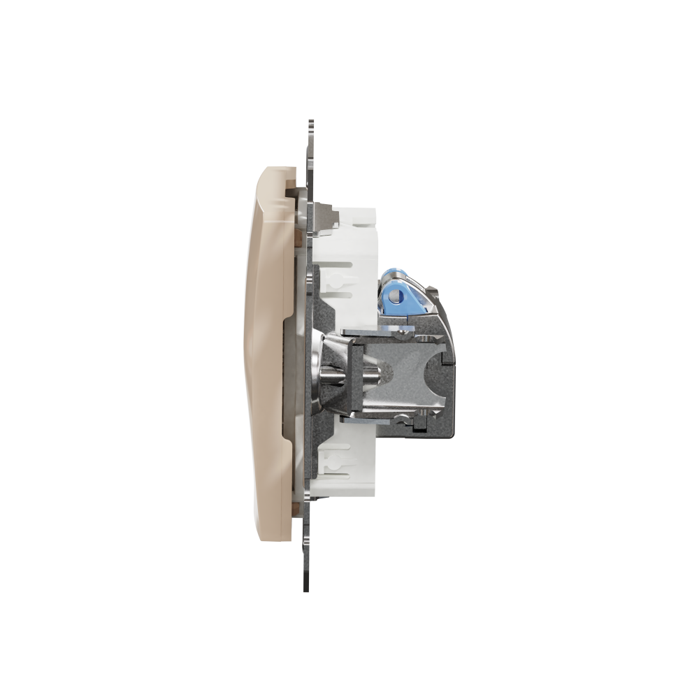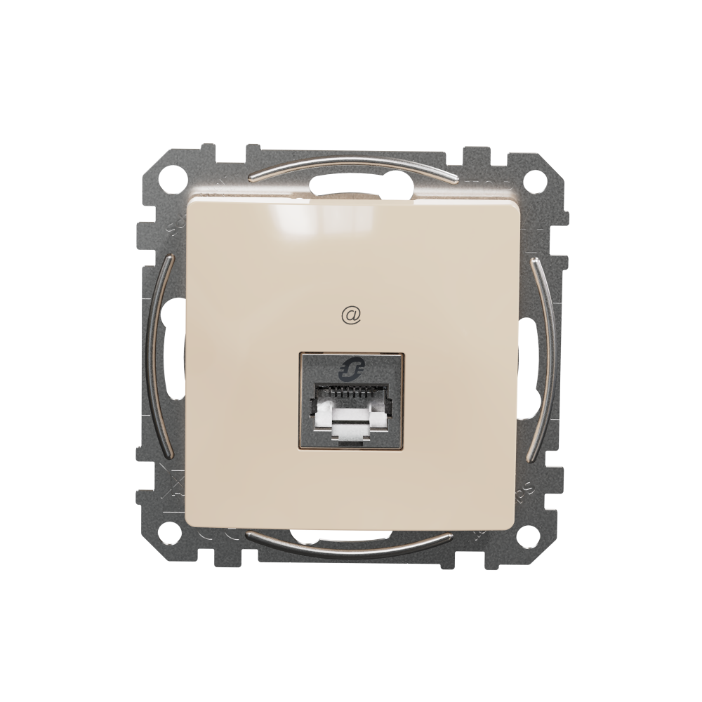 Sedna Gniazdo komputerowe RJ45 kat. 6 STP, beżowy, to osprzęt serii Sedna Design marki Schneider Electric. Gniazdo komputerowe ma lśniące wykończenie powierzchni w kolorze beżowym i posiada następujące wymiary: szerokość 73 mm, wysokość 73 mm, głębokość 35 mm, głębokość wystawania 13 mm. Gniazdo charakteryzuje się stopniem ochrony IP20. Do produkcji gniazda wykorzystano tworzywo termoplastyczne o zwiększonej odporności na promieniowanie UV. Produkt jest montowany podtynkowo.