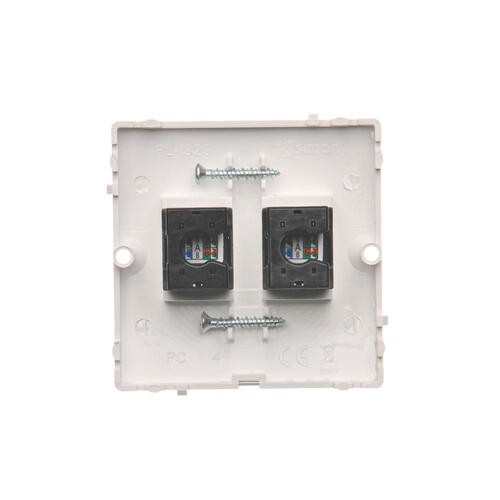 Gniazdo komputerowe RJ-45 podwójne (moduł), kategoria 5e, montaż na wkręty.