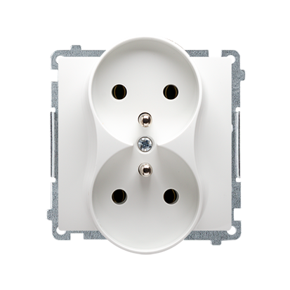 Gniazdo wtyczkowe podwójne z uziemieniem (moduł), 16A, 250V~, zaciski gwintowe. Nie nadaje się do montażu w ramkach pionowych wielokrotnych.