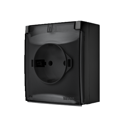 Gniazdo wtyczkowe IP44, Schuko, pojedyncze, klapka transparentna ?16 A, 250 V~, zaciski śrubowe; czarny - KONTAKT SIMON - ACGSZ1C/49A