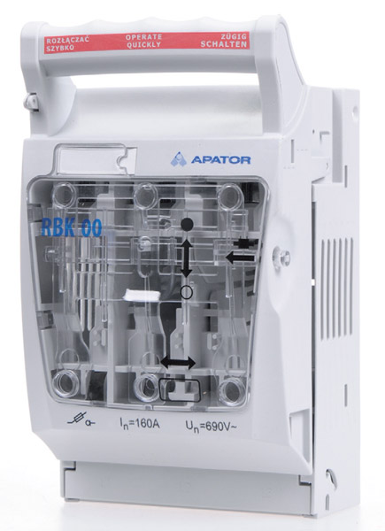załączanie: 3-biegunowe przystosowane do montażu na płycie, rozłącznik wyposażony jest komory gaszeniowe, uzbrojone w metalowe płytki dejonizacyjne możliwe przyłącze kablowe : zacisk mostkowy, śrubowy M8 oraz zacisk sektorowy możliwość plombowania rozłącznika możliwość zwalniania i usuwania wkładek bez konieczności ich dotykania otwory pomiarowe umożliwiające sprawdzenie stanu bezpiecznika